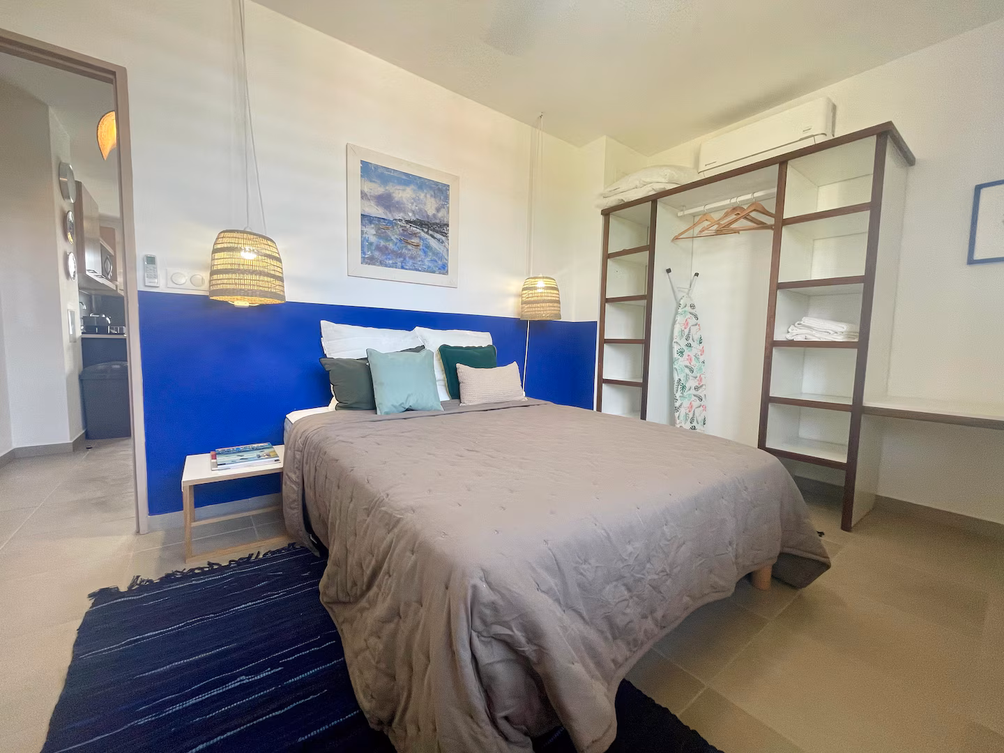 Appartement traversant et lumineux situé dans une résidence sécurisée avec piscine. Idéal pour 1 à 4 personnes, chambre équipé d'un ventilateur plafonnier et d'une climatisation.